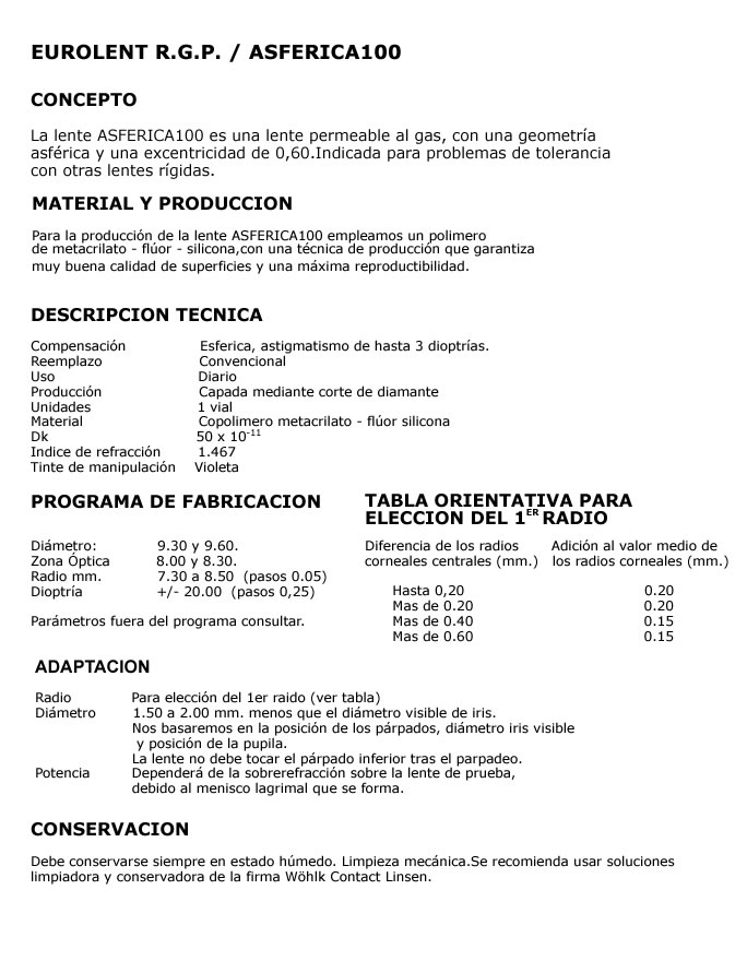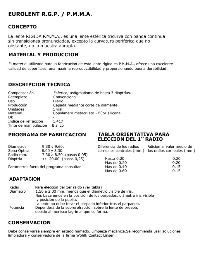 Documentación técnica de Eurolent: lentes R.P.G.